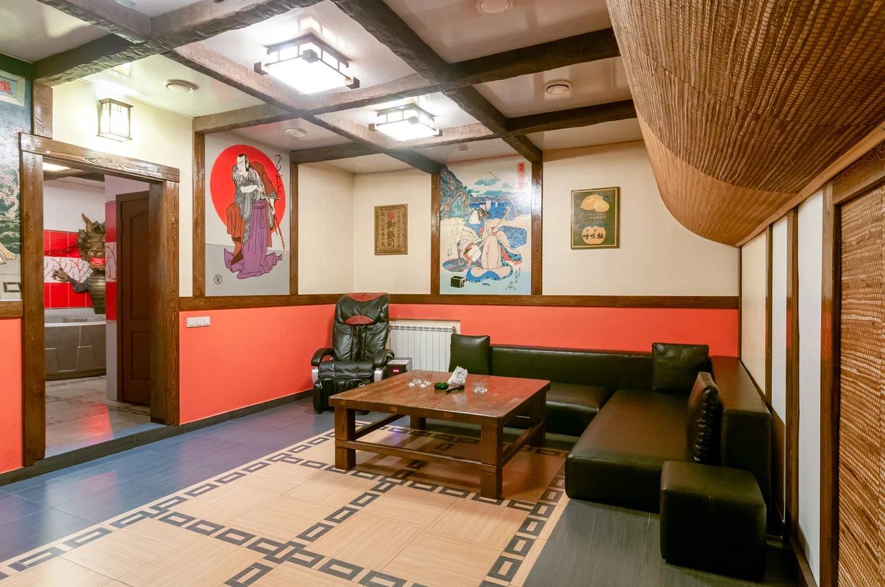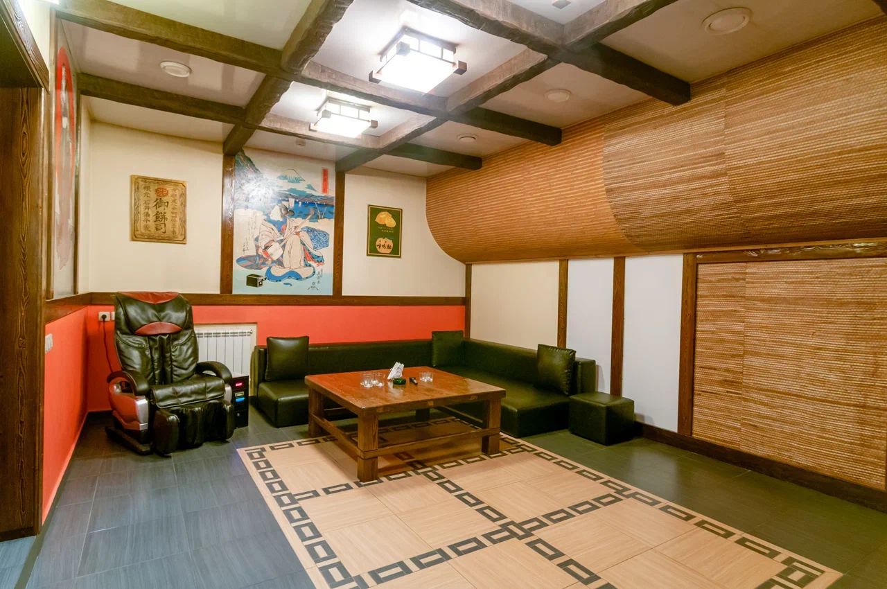 Большой комфортный номер в японском стиле. Горячая парная. СПА-ванна с аэрогидромассажем. Горячая каменная лежанка. Отдельная опочивальня.